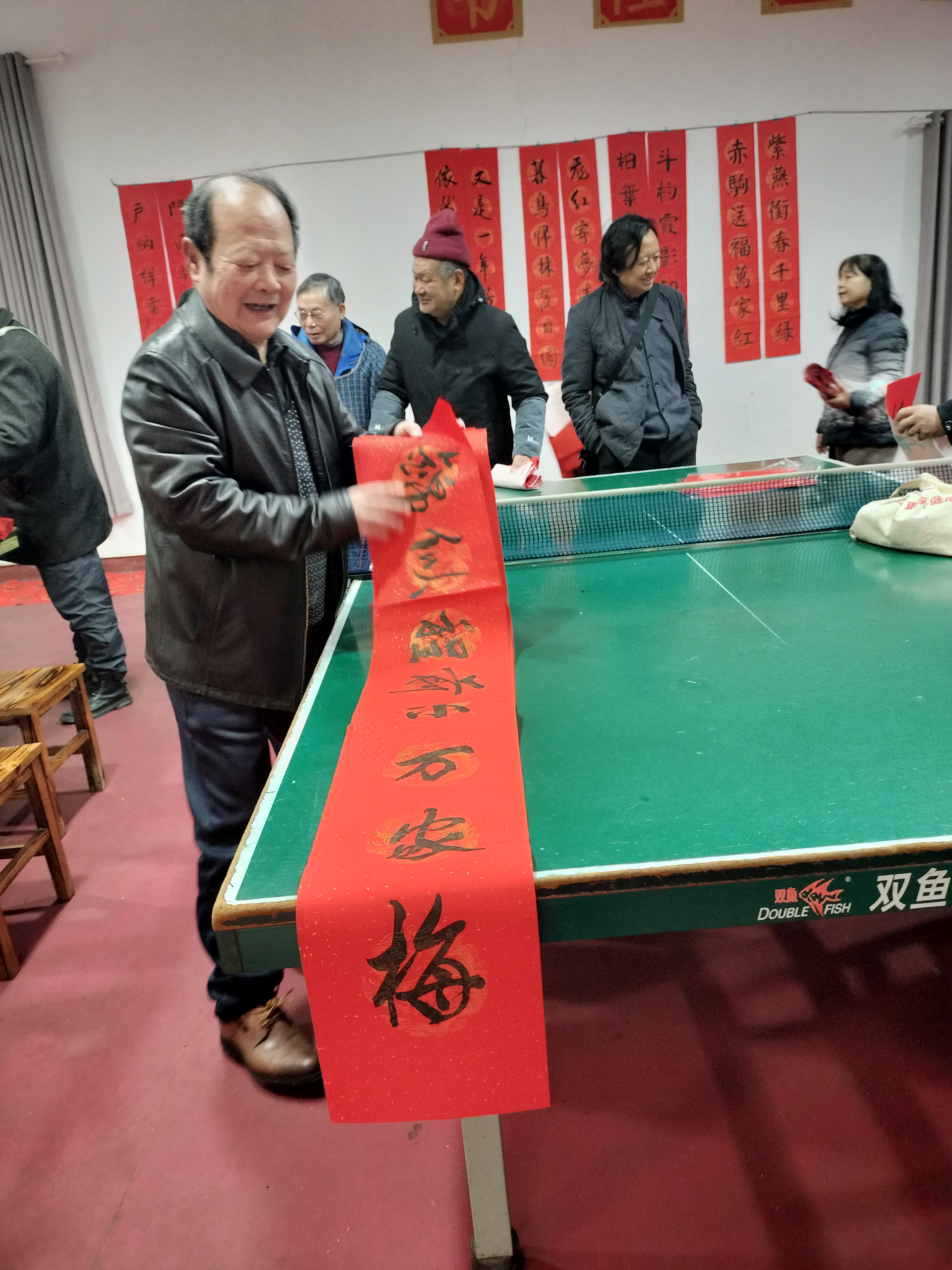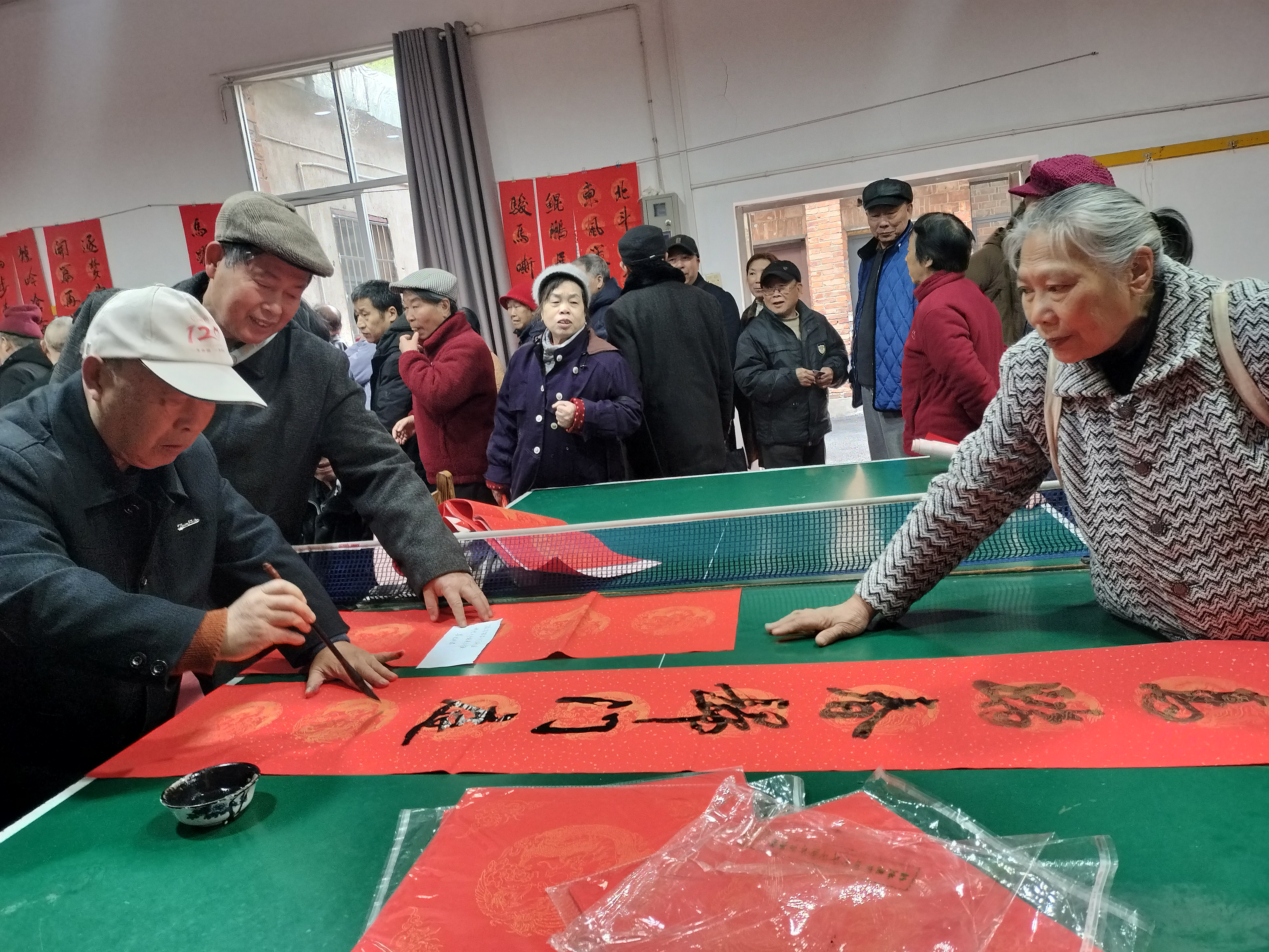 现场最具年味的环节是“马上送福”。贺浦林、陈壮怀、黄顺年、易文建、李亚坤、黄自力等离退休书法爱好者挥毫泼墨,笔走龙蛇间,一幅幅寓意吉祥的春联与遒劲有力的“福”字跃然红纸上。“骏马奋蹄开锦绣,春风送暖入千家”,既有对马年的美好期许,也饱含对老同志的深情祝福。老同志们或围站观赏、交流品评,或排队定制心仪的春联,接过墨宝时脸上洋溢着幸福笑容,纷纷与书法爱好者合影留念,定格这份新春暖意。